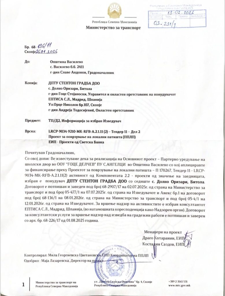 Градоначалникот на општина Василево, Славе Андонов, преку својот ФБ профил, https://www.facebook.com/vasilevo24, сподели информација со која го најавува скорешниот старт на оградувањето и партерното уредување на дворот на училиштето во Ангелци.