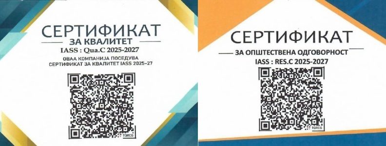 Здружението за истражување, анализа, стандардизација и сертификација ИАСС Скопје, на општина Вaсилево и издаде Уверение за стекнат Сертификат за квалитет IASS: QUA.C 2025 – 2027 и Уверение за стекнат Сертификат за општествена одговорност IASS: RES.C 2025:2027. Како што стои во овие документи Сертификатите се потврда за општествената одговорност, грижата за вработените, грижата за околината, филантропијата, посветеноста за напредокот на заедницата, односот кон граѓаните и позитивниот пристап во соработката со сите партнери.